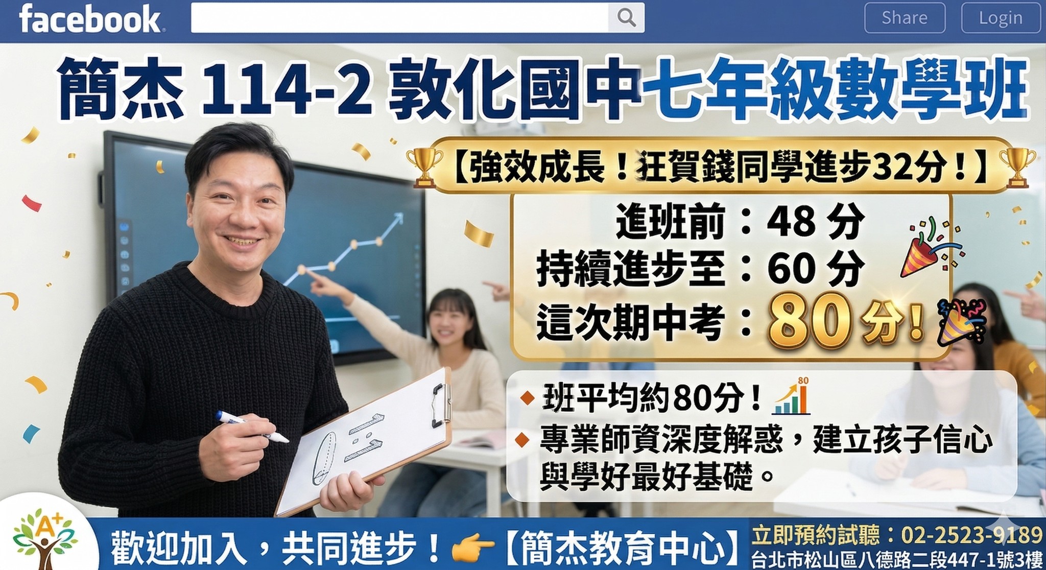 • 升學表現: 在輔導學生考取延平、再興、薇閣等私中,以及衝刺建中、北一女等頂尖高中有顯著成效,有學生在補習後取得數學滿分或大幅進步的案例。