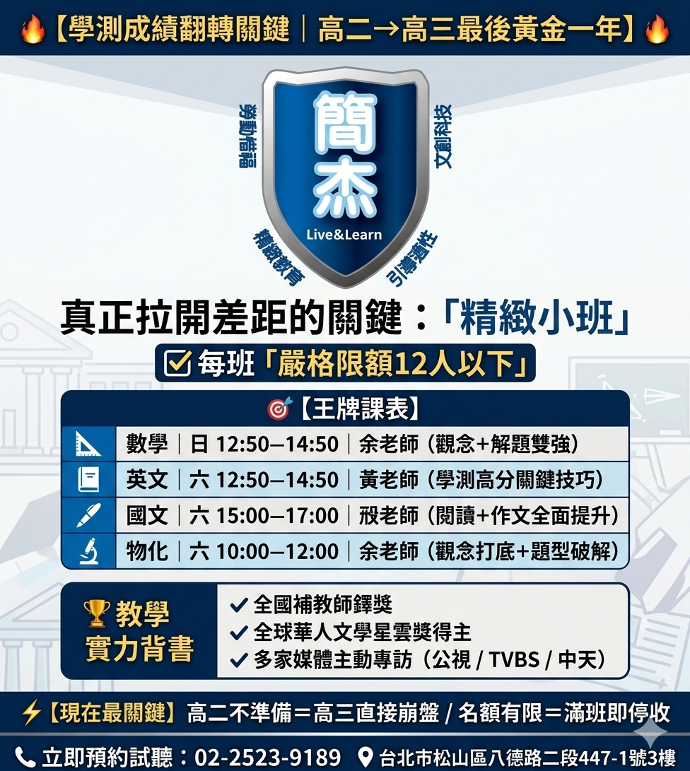 簡杰補習班 神救援 02-2523-9189